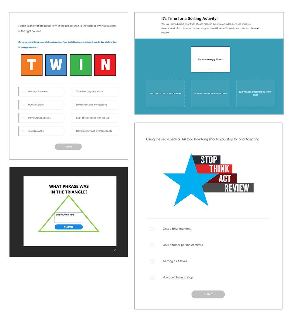 Our online learning is built around the idea that the technology should be a conduit for the education process, not a burden. Our courses are not only very easy to navigate, but include a wealth of interactive elements designed to keep learners engaged. This is why all of our modules include things like: